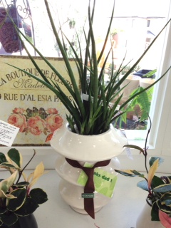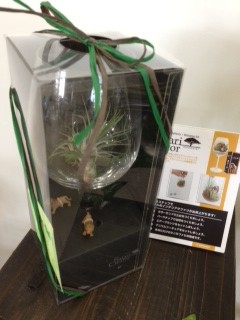 POTOS HOUSE ギフトコーナーでは いろいろな観葉植物をすてきな陶器鉢にアレンジし、その素敵な効果のために元気に育てていただくための管理カード、そしておリボンのネクタイとメッセージカードを添えて ご用意しています。