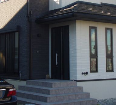 こちらのお宅の玄関のグレーの色の部分ですが、細割ボーダーと言われる細いタイルを貼っていますが、
