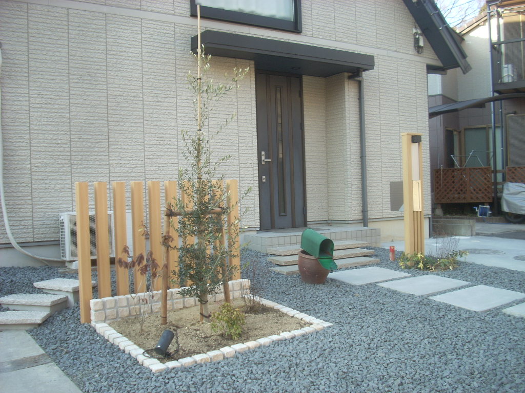 花壇スペースにシンボルツリーの