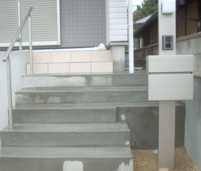 階段が仕上がり、アルミ製の【機能門柱】が付きました