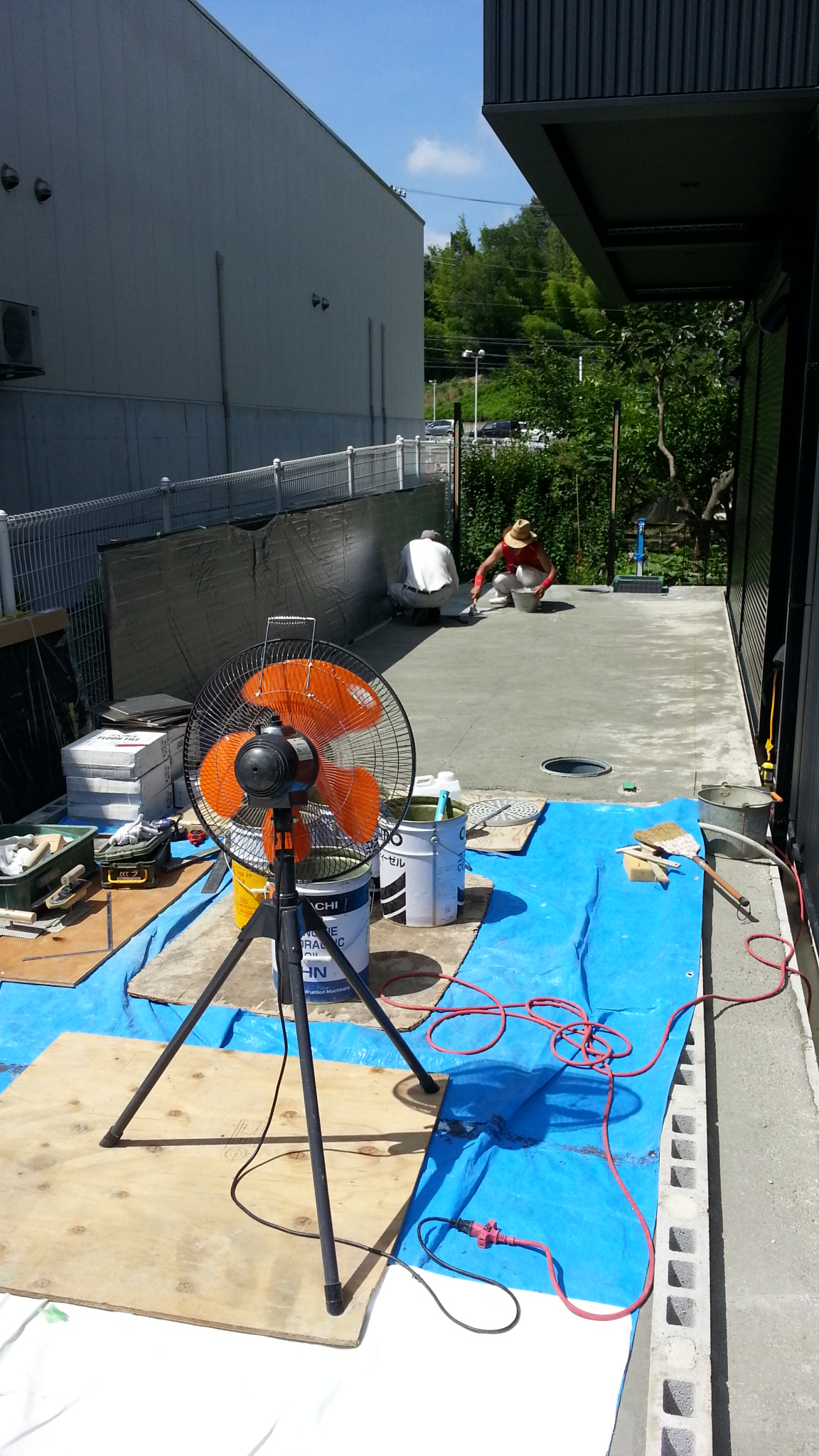 大型扇風機を回していますがあまり意味がありません。