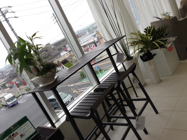 数日前 お店のテラスで生育中のローズマリーを秋の成長期にあわせて切り戻しをしました。
