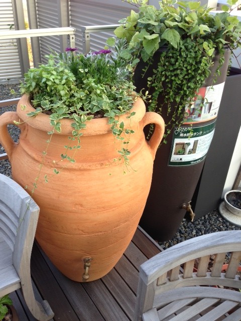 大きなポットの形をしていて上部に植物を植え込みができるタイプは大きいだけになかなか素敵&便利!