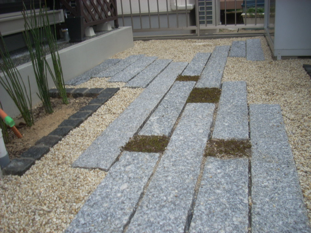 ↑御影の延石と黒御影のピンコロ石で、