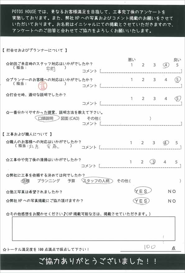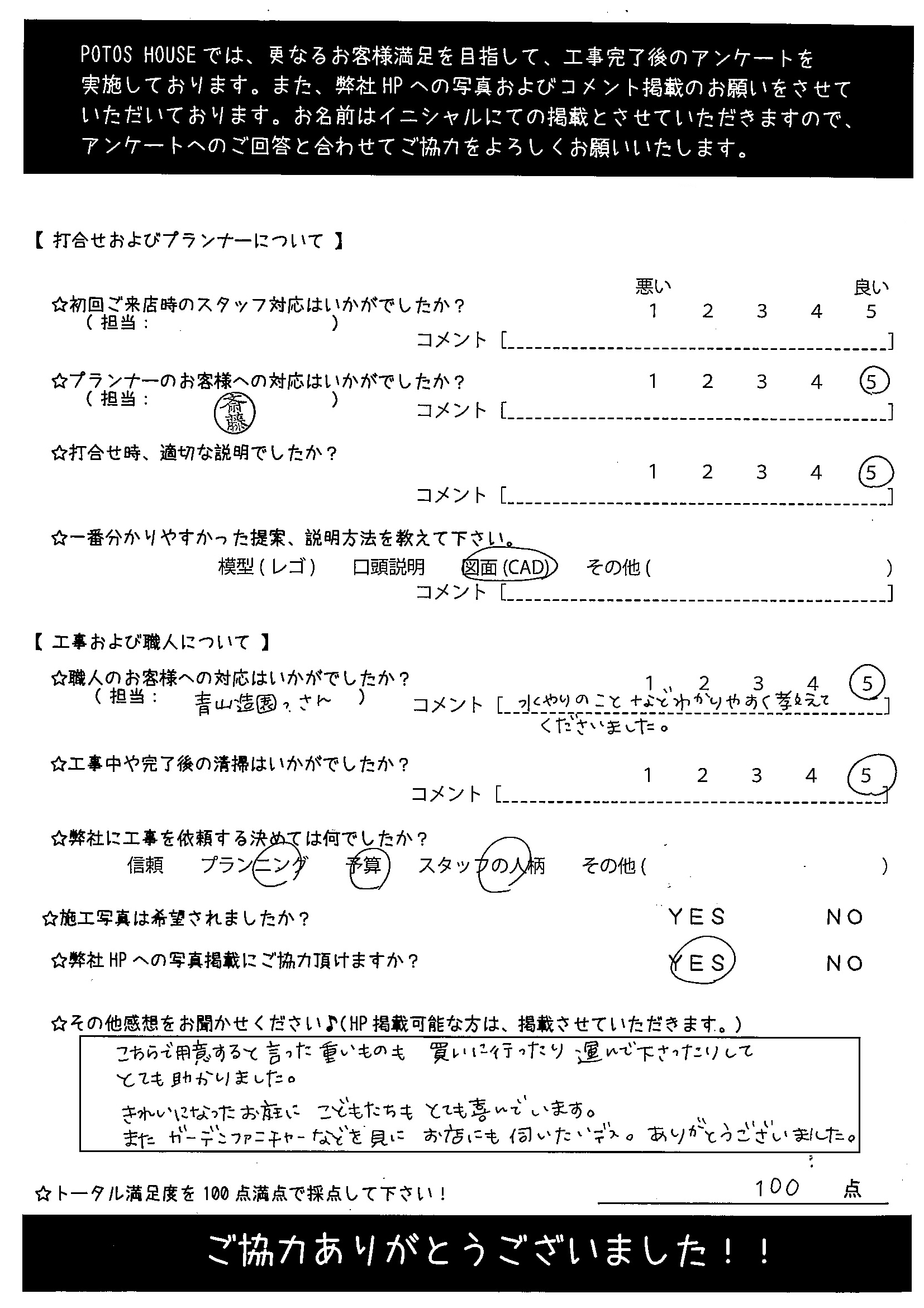 I様、お忙しい中アンケートのご協力をありがとうございました!