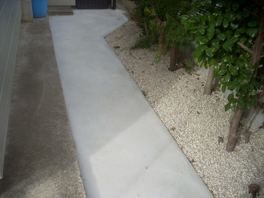 コンクリートで舗装しスッキリと歩きやすい通路に変身です。