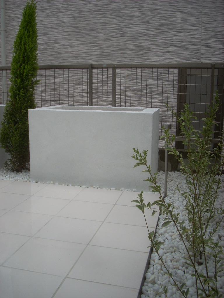 白を基調としたお庭で、植栽や奥様が植えて下さったお花が良く映える