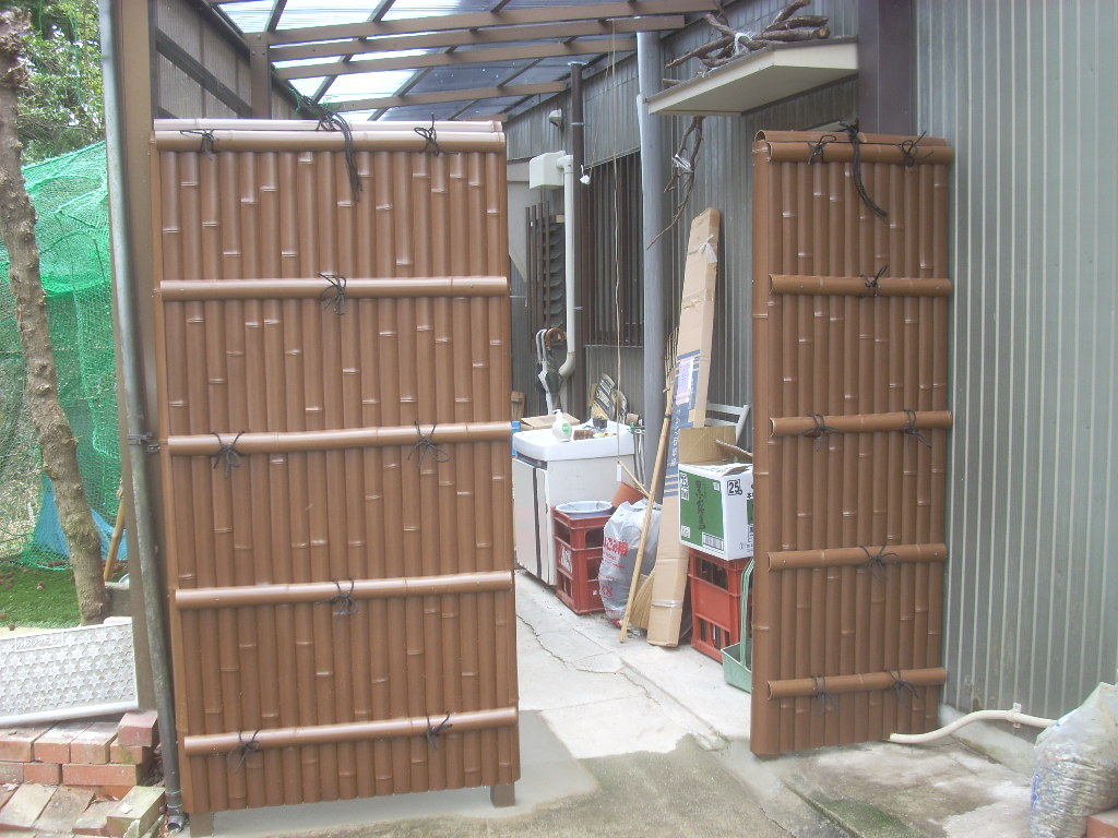 天然竹フェンスから樹脂垣フェンスへの取替え工事です。