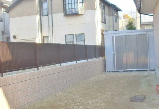 隣地様の和風の塀がリビングからの景観に合わないとのことで、木調フェンスで景観をリフォーム!