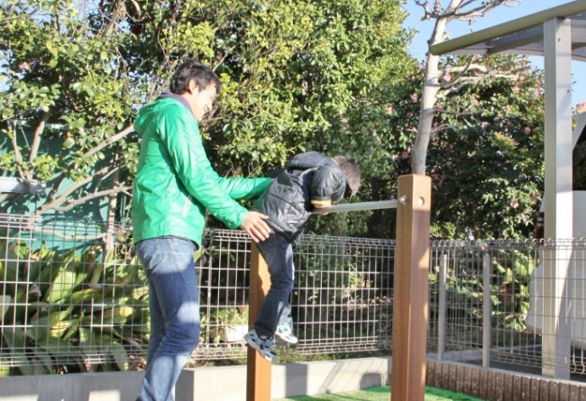 お庭に鉄棒があれば、お子さんに教えてあげたり、一緒に遊んだりと、一緒に過ごす楽しいお庭になりますよ。