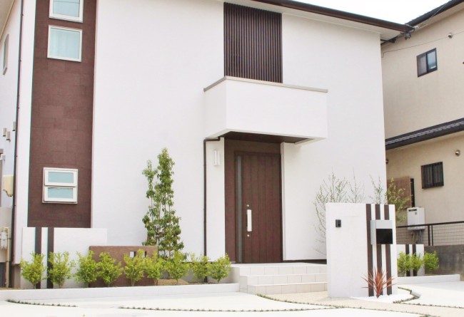 落ち着いた焼レンガが気品ある外構空間を作り出します。時間の経過と共に深みを増していきます。