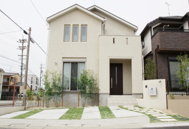 広々とした駐車スペースと、アプローチは洗い出し仕上げでアクセントを。