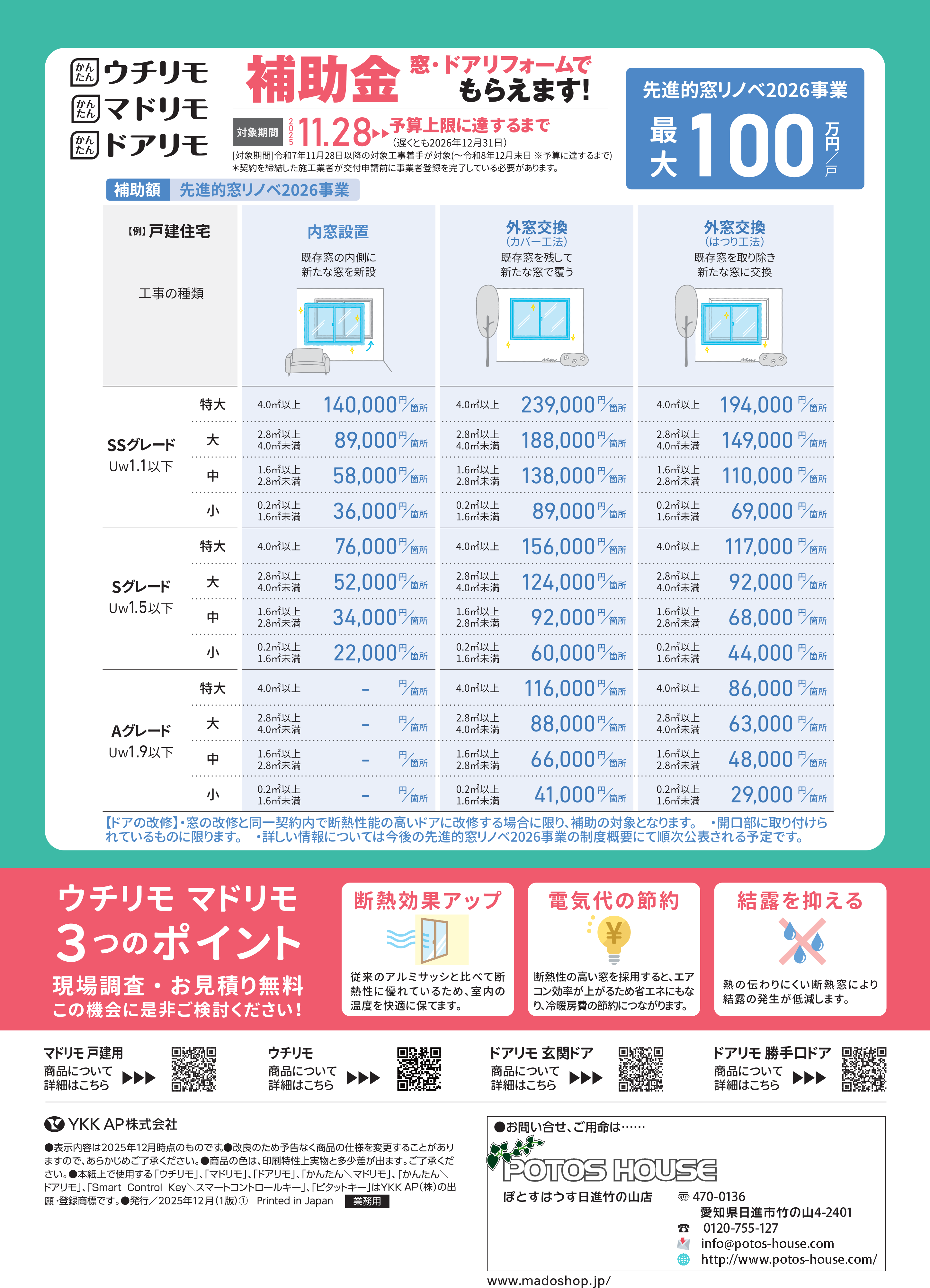 昨年度と同様 内窓の設置・外窓の交換・ガラスの交換などが対象です。
