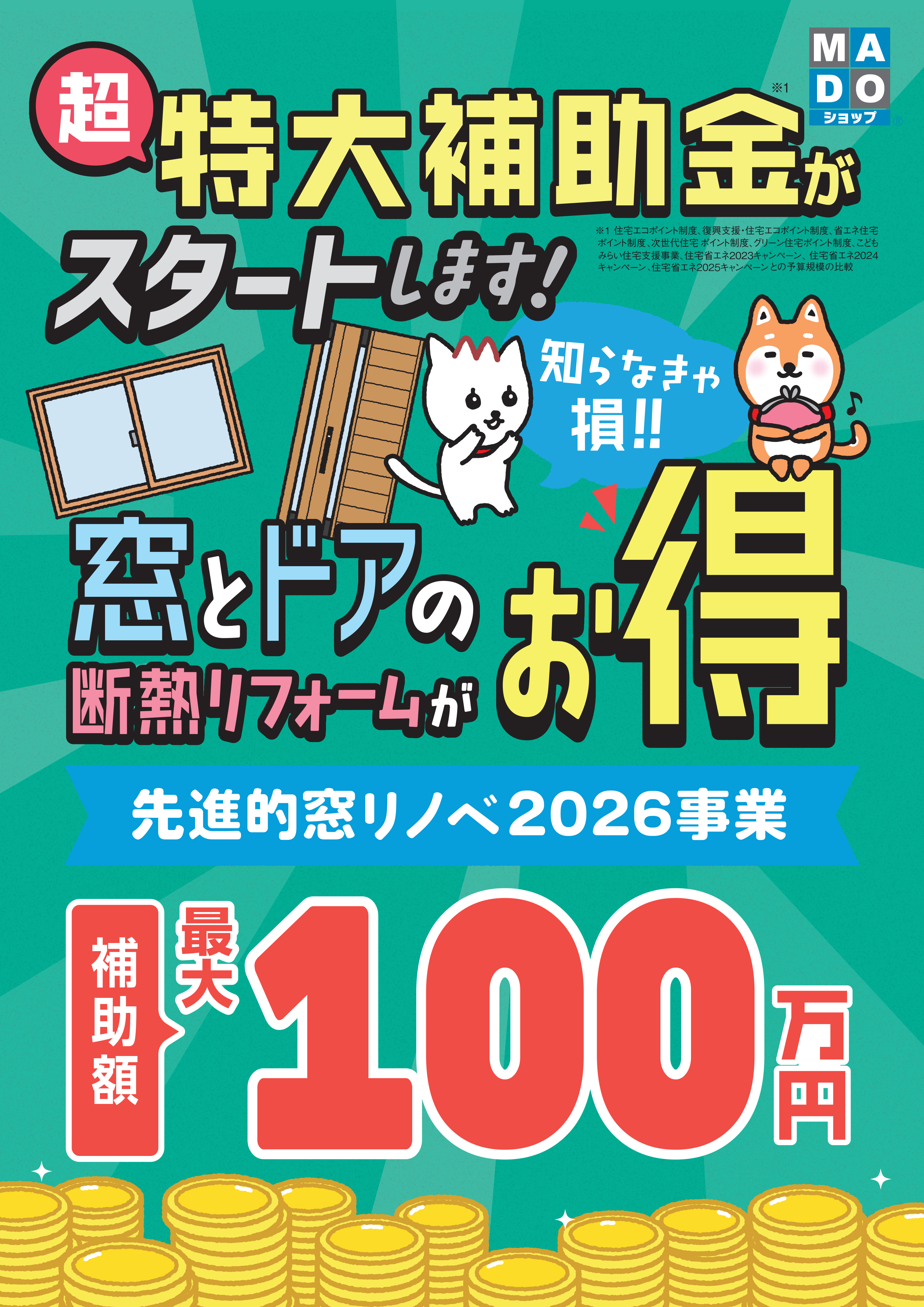 先進的窓リノベ2026事業 窓とドアの断熱リフォーム補助金がはじまります!