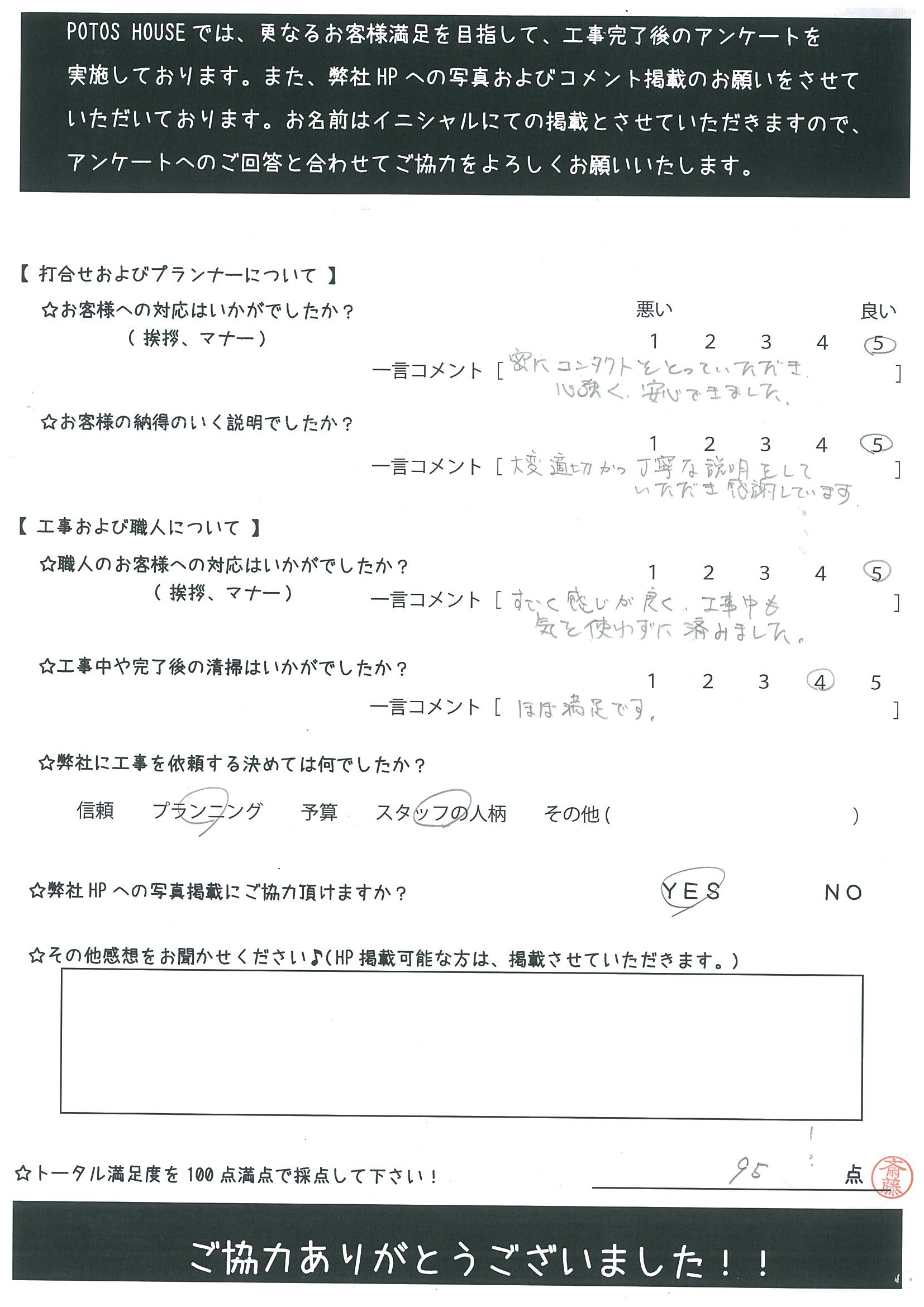 N様にはお忙しい中、アンケートにもご協力いただきありがとうございました!