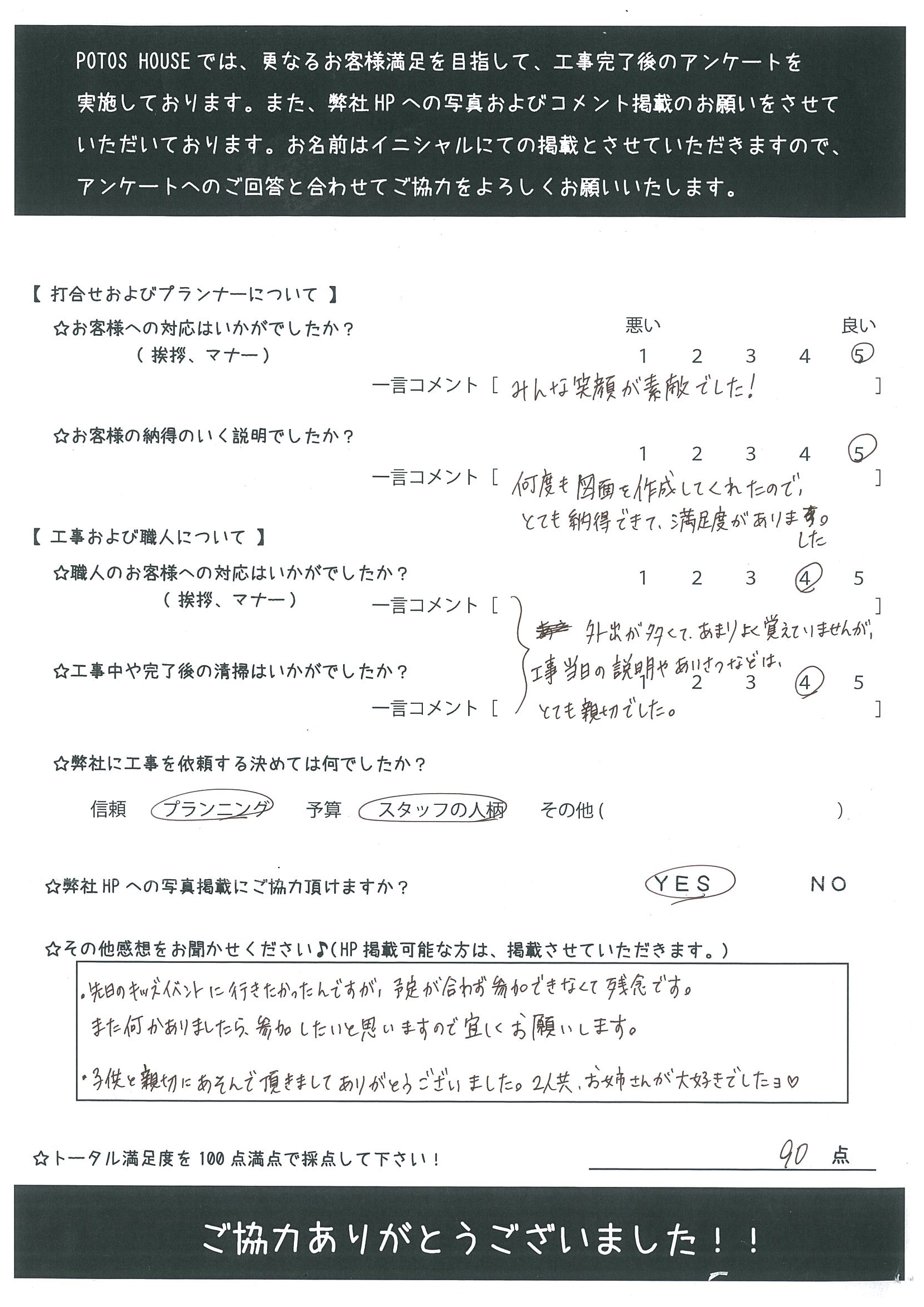 I様にはお客様アンケートにもご回答いただきまして