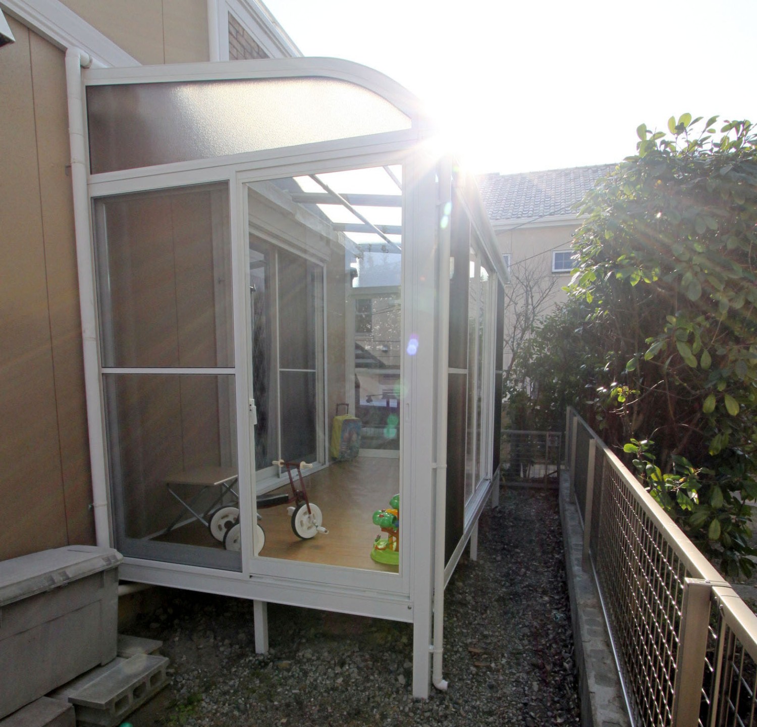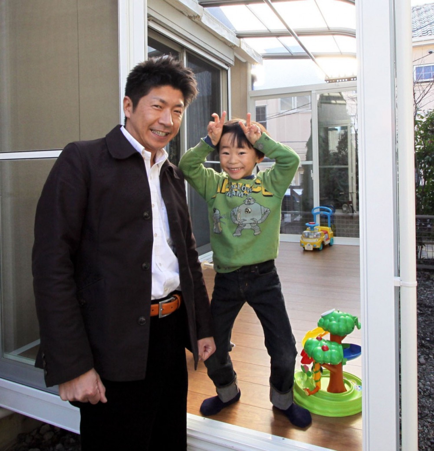 サンルームはこの季節ポカポカで、床もフローリングにしたので、子どもたちも大喜びです!