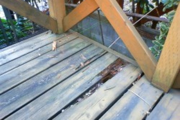 古くなって、木が腐ってきたウッドデッキを撤去して、サンルームにしました。
