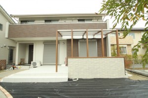 三協アルミの腰壁オープンテラスタイプのスマーレとタイルテラスをご提案させて頂きました。